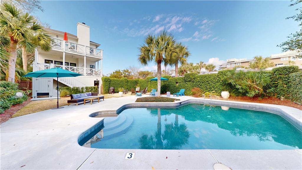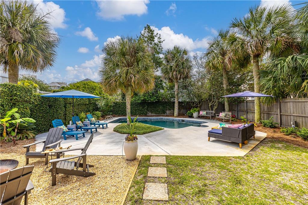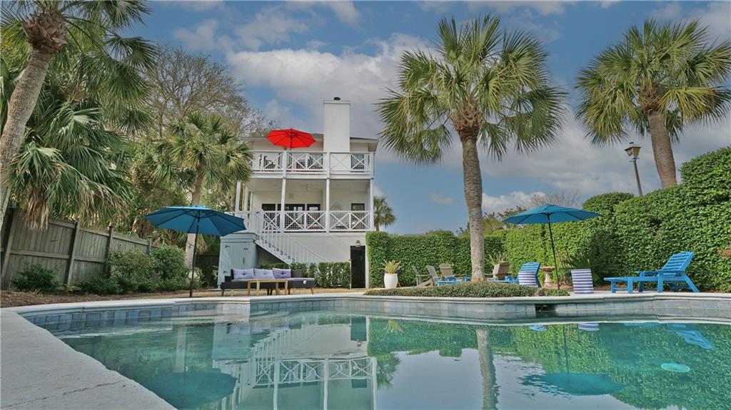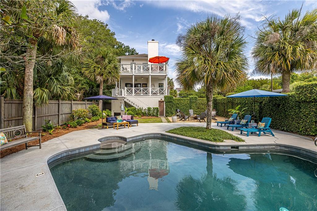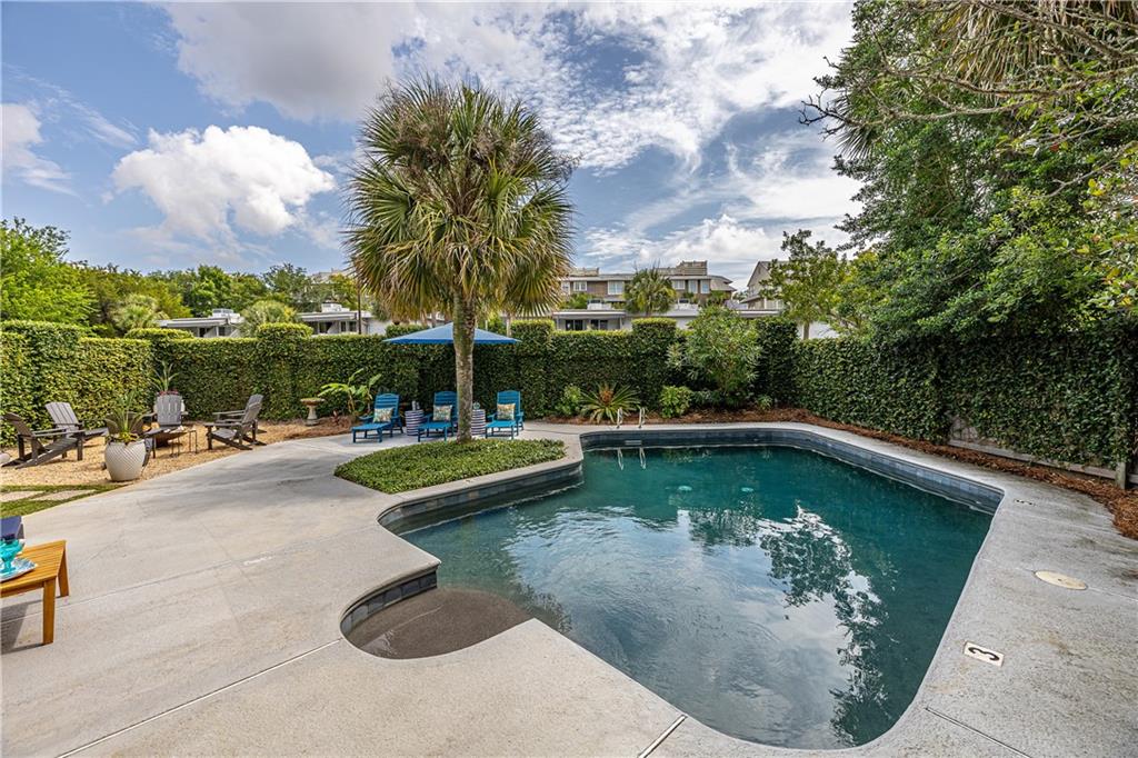 private oasis, where a shimmering pool enjoys the perfect balance of dappled