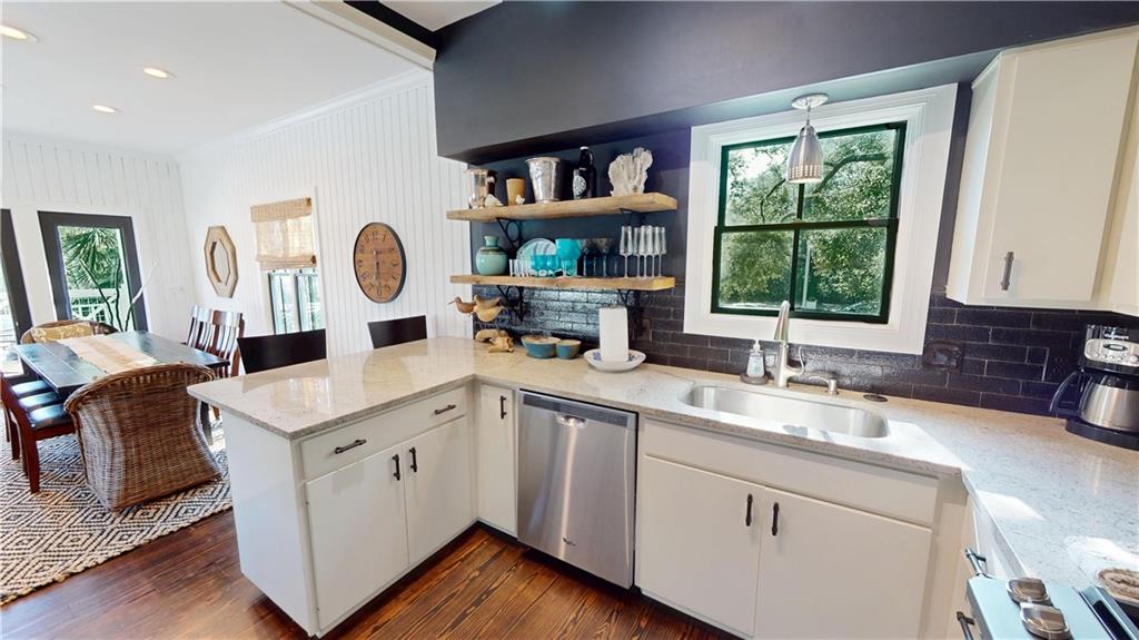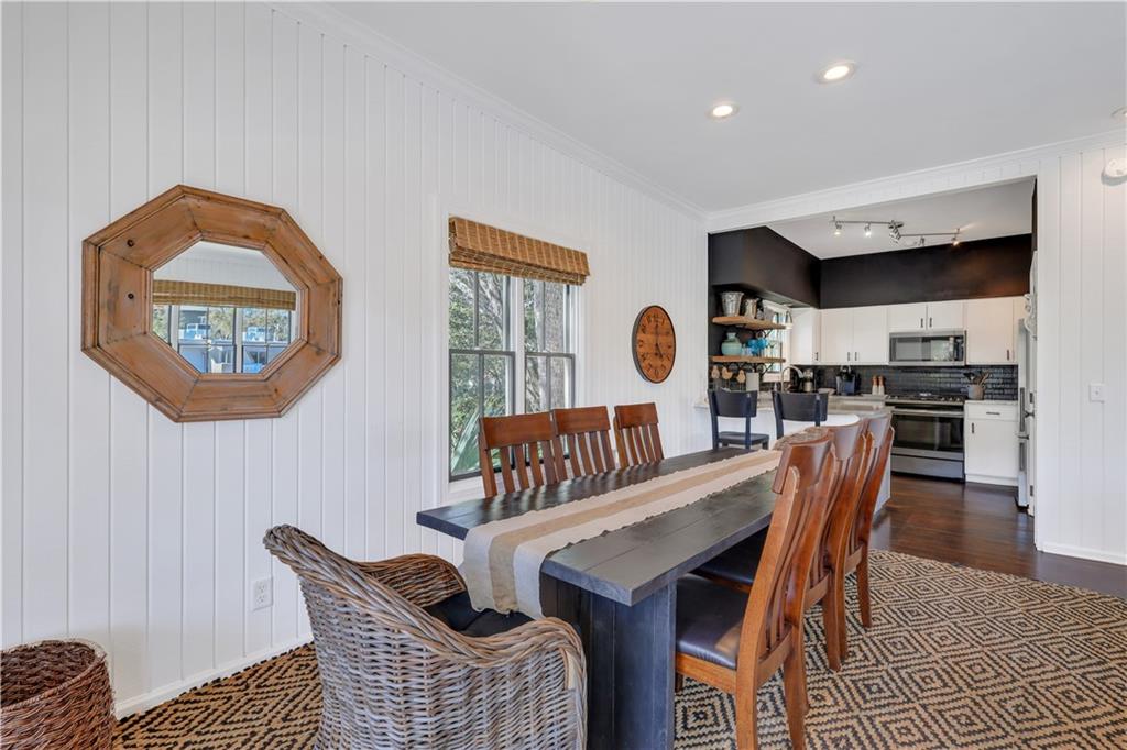 overlooking the lush backyard, perfect for morning coffee or evening toasts.